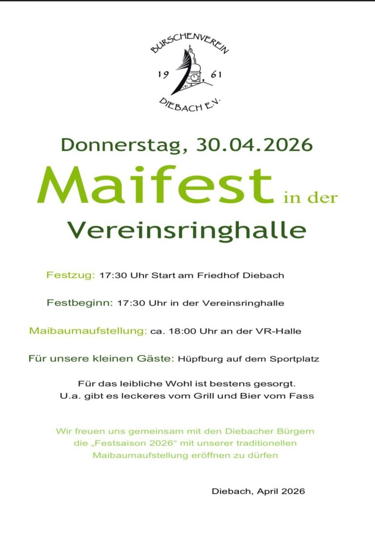 Fülle hierzu den unten im Link zur Verfügung stehenden Mitgliedsantrag und das SEPA-Lastschriftformular vollständig aus und sende beides an info@burschenverein-diebach.de
